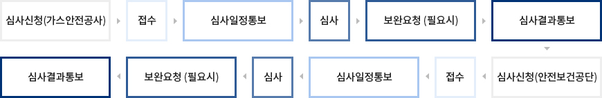 • 심사기간 : 접수 후 30일 이내(가스안전공사 15일, 안전보건공단 15일)